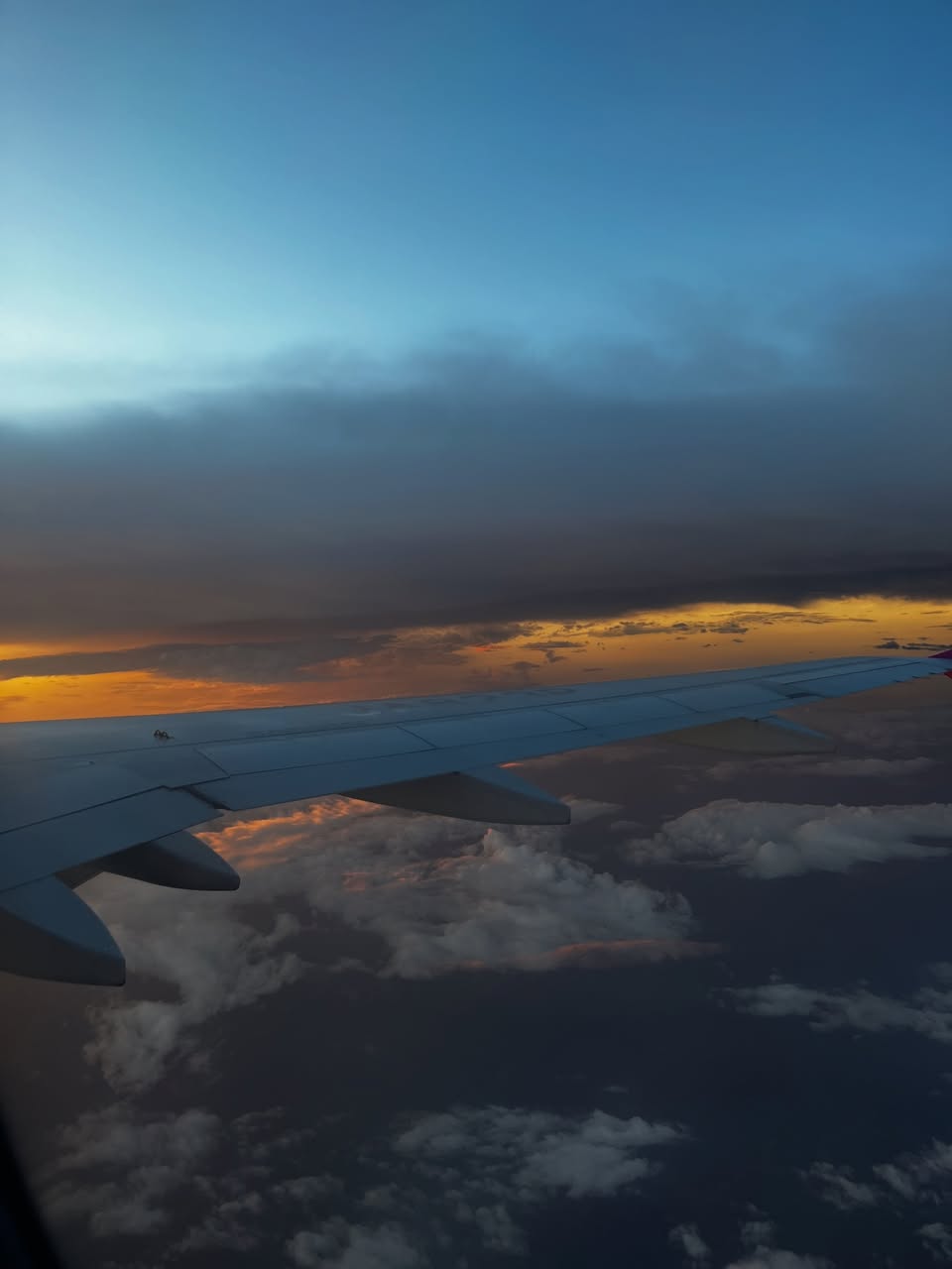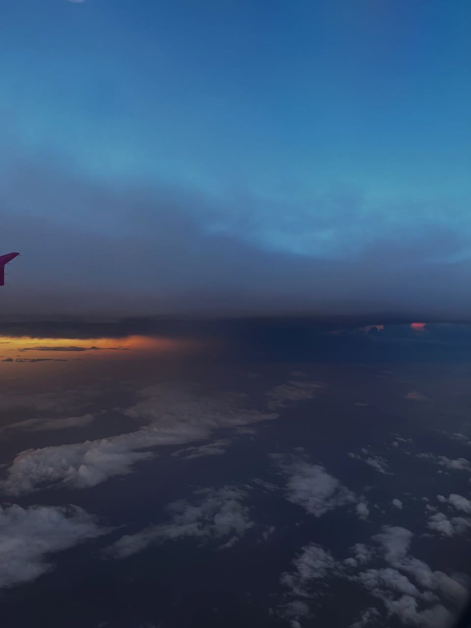 飛行機から見た空と雲から差す閃光、